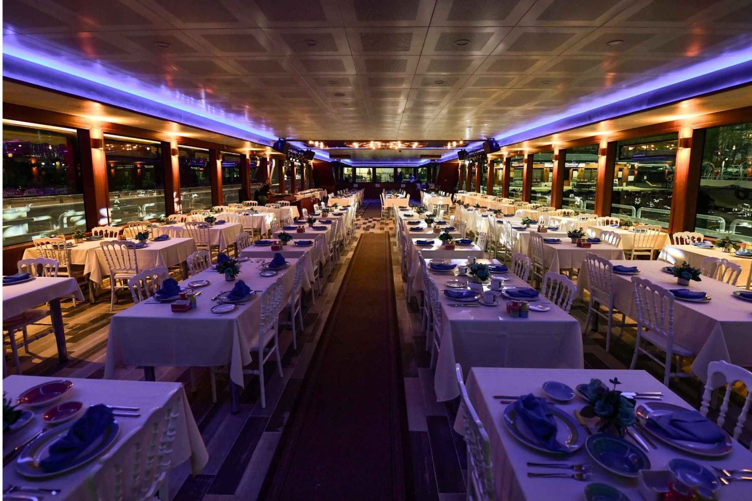 - If you selected the transfer option, please be ready at your hotel by 19:00. Pick-up will take place between 19:00 and 20:00. If your location is not directly accessible, pick-up will be arranged from the nearest possible point If you selected the alcoholic drinks option, your package includes 2 glasses per person. Additional alcoholic beverages can be purchased onboard The dinner menu supports special dietary needs, including vegetarian, pescetarian, and halal Private tables are not available for solo travelers; guests with single reservations will be seated at a shared table
