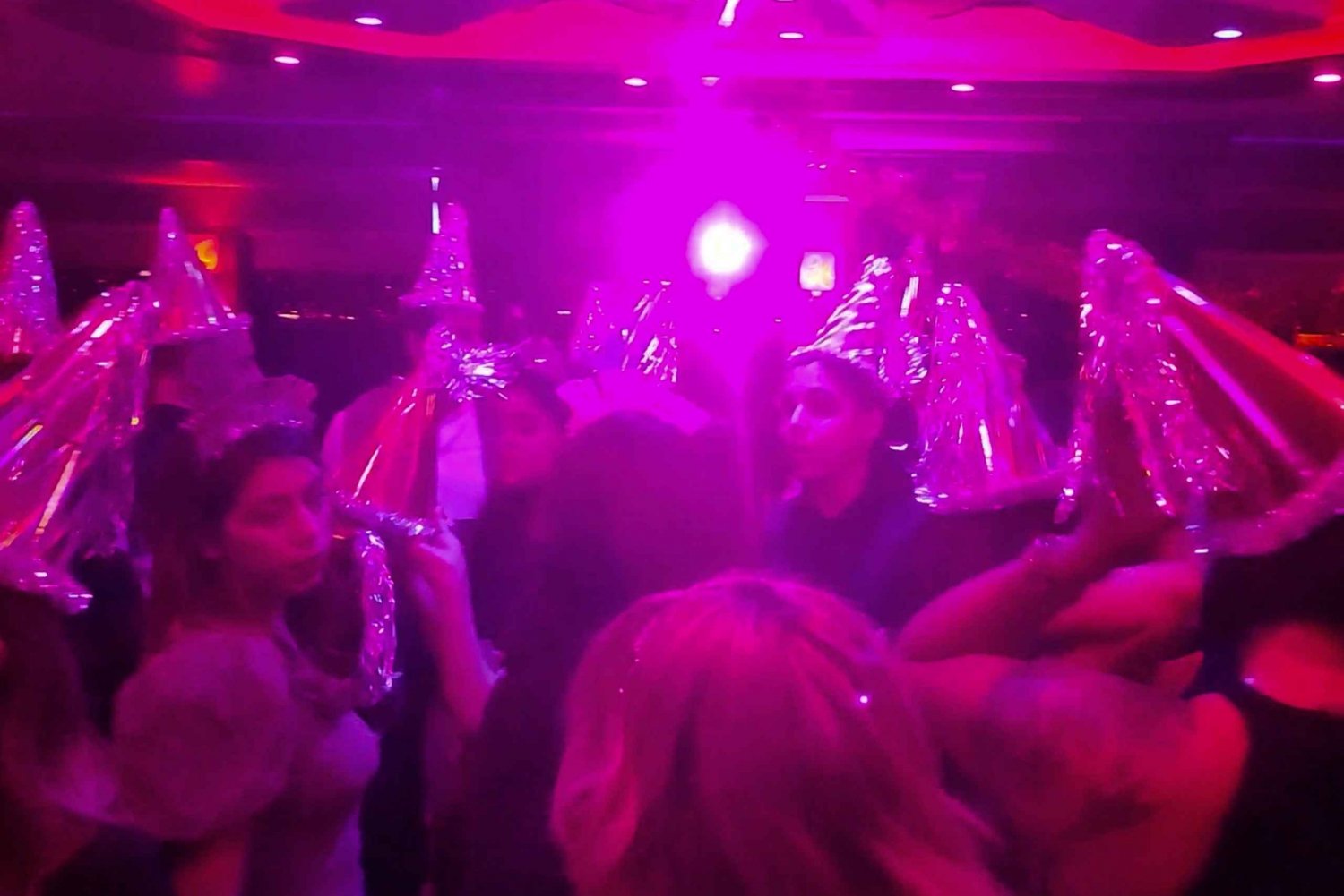 Be picked up from your hotel and delivered to the boarding of your cruise boat for the night. Join others on board the group of up to 200 guests, and find new friends to celebrate ringing in 2025. Board the boat around 8:30 PM, and be welcomed with a glass of champagne. Settle in for dinner as you enjoy limitless local drinks, soft drinks, and water on board. Take in scenes of the Bosphorus along the way. Next, let yourself be entertained by belly dancers and whirling dervish performances as supper is served. Enjoy traditional Turkish cold appetizers, spring rolls with cheese, fresh seasonal salad, and roasted turkey with Turkish rice. Sip on a Turkish coffee as the dessert of mixed fruits and sweets is brought to your table. Take in more live entertainment, like a Romary dance and a live DJ performance as the night continues. Finally, at 11:30 PM, you'll get whistles and New Year's themed glasses to ring in the year at 12 AM with a bottle of champagne. Your cruise boat will dock at 2 AM and you'll be safely delivered back to your hotel.Includes