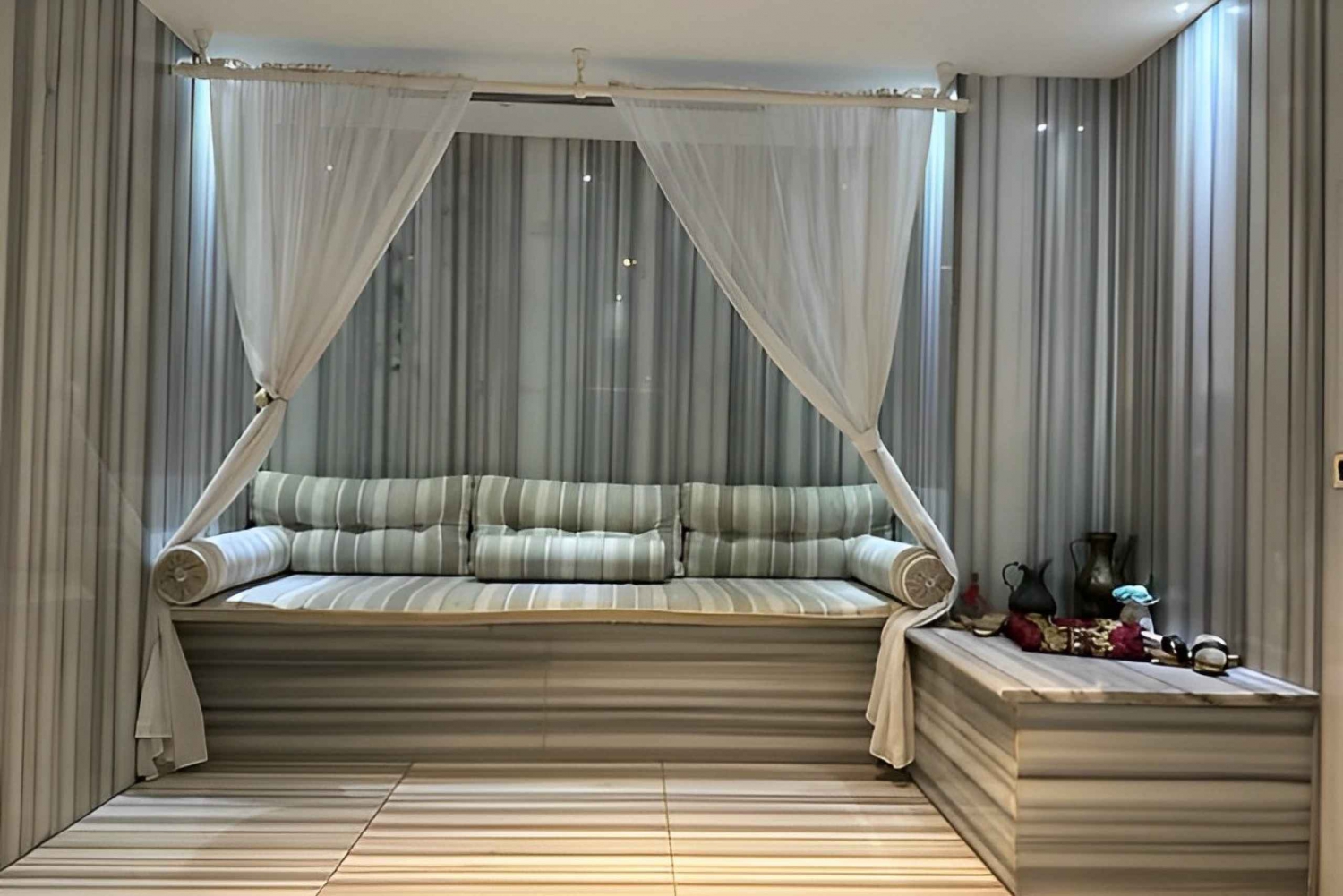 - The waiting areas and halls will be publicly used, but the usage of the Turkish bath will be private for you and/or your group, as well as the massage rooms All of therapists are female