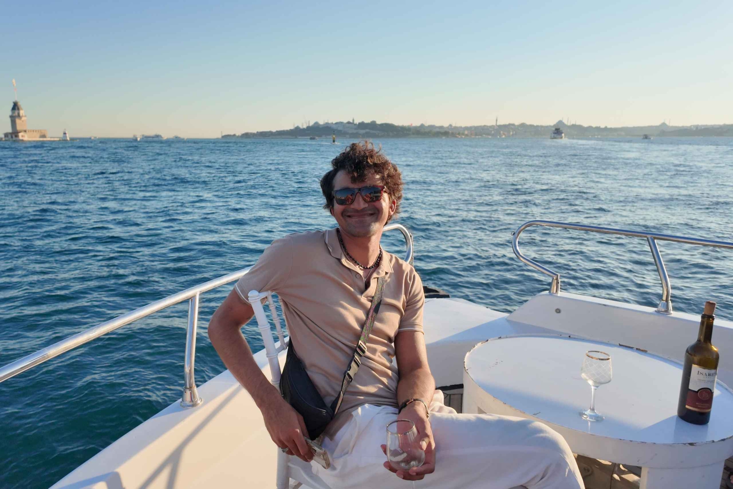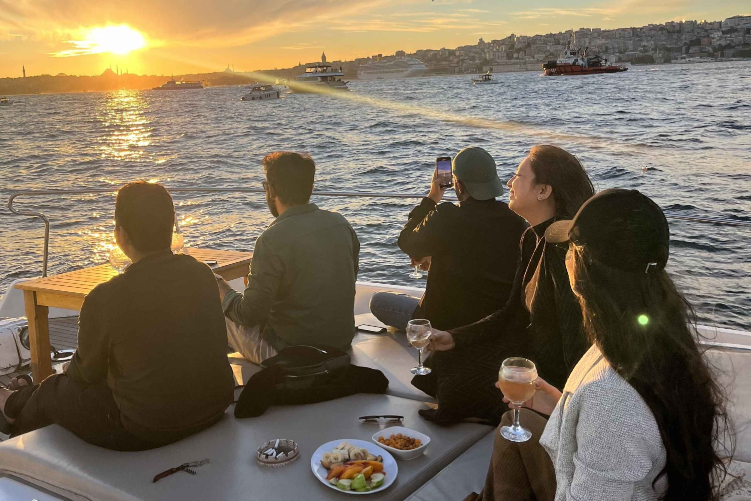 Our experienced crew welcomes you aboard and will accompany you throughout your journey with guided sightseeing, personal narratives, Aegean wine, fresh seasonal fruit and mixed nuts. Unlike other tours on Bosphorus, this is limited to 12 guests and averaging at 6 to 8 people, this experience feels like chilling on the Bosphorus with few friends. The tour starts in Karaköy, where we set sail along the Golden Horn, passing by the historic peninsula before entering the Bosphorus. Cruising along the European side, we pass Galataport, Dolmabahçe Palace, Çırağa Palace, and Ortaköy Mosque before reaching the Bosphorus Bridge. We then cross to the Asian side, where you can admire the waterfront mansions, Beylerbeyi Palace, and the Maiden’s Tower. The tour lasts for two hours, after which we will drop you back to the starting point in karaköy. Whether you are traveling alone, with friends, or family, this tour is a must-do for everyone seeking a unique and memorable experience. Join us to relax, unwind, and enjoy a truly memorable journey. Minimum 4 guests are required for the tour to take place, if not you will be welcomed in the next available tours or you can request 100% refund.Includes