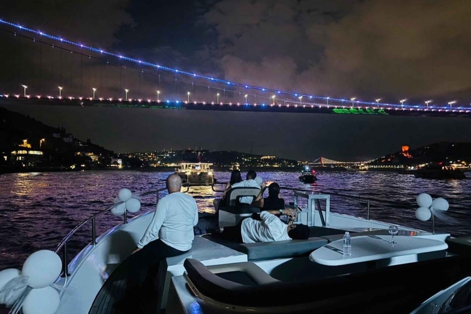 Join us for an unforgettable 2-hour night tour on a luxury yacht, surrounded by the enchanting lights and views of the Bosphorus. Explore Istanbul’s historic and modern beauty while enjoying the serene atmosphere. Guests will be treated to a glass of wine, fresh grapes, and delicious snacks, creating a delightful experience. To make the night even more magical, a live violinist will accompany us on the deck, with soothing melodies reflecting on the calm waters, turning this unique evening into a fairy tale.Includes